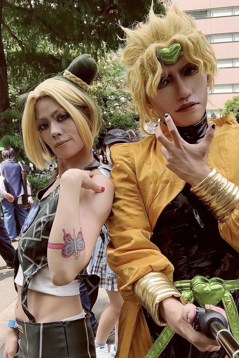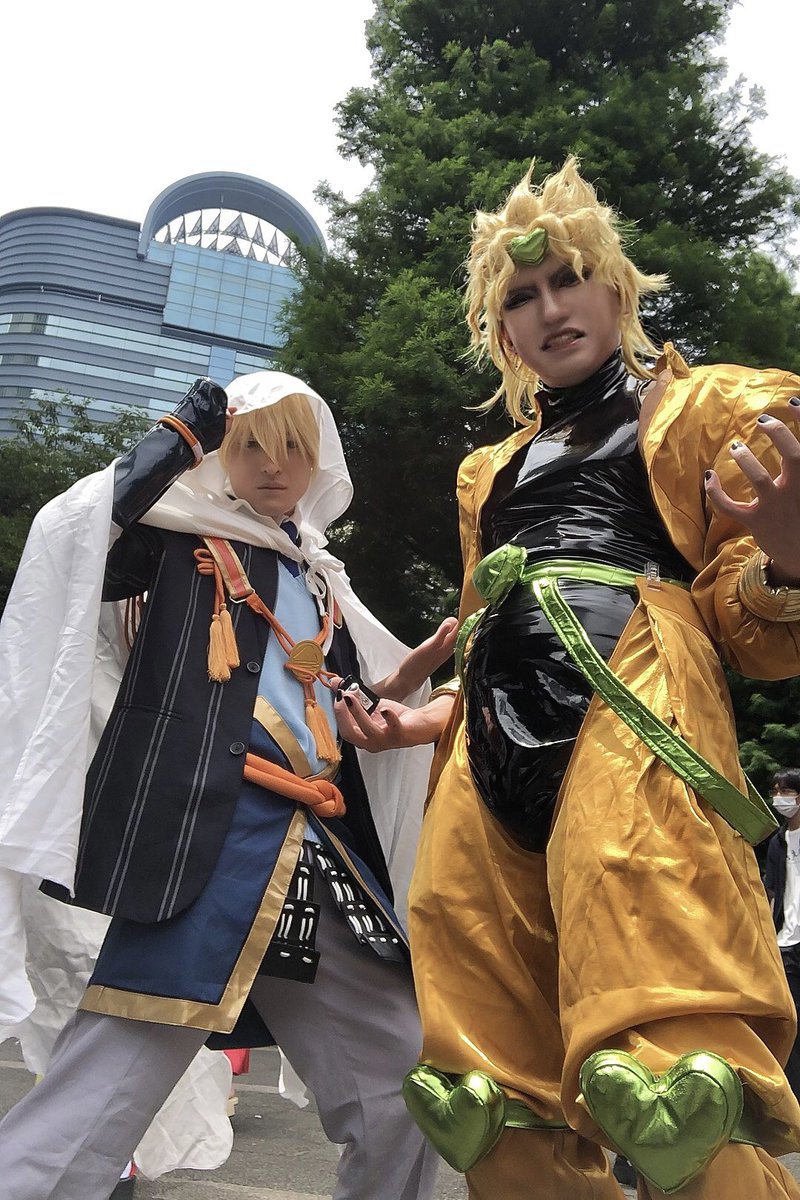 いつもカッコいい刀剣コスをアップしてくださる、しょたんさん(@shotan_cos)にお目にかかれました!! クールで男前のまんばちゃんと太陽の下でハイになったDIOです。 #アコスタ #アコスタ池袋 #ジョジョの奇妙な刀剣