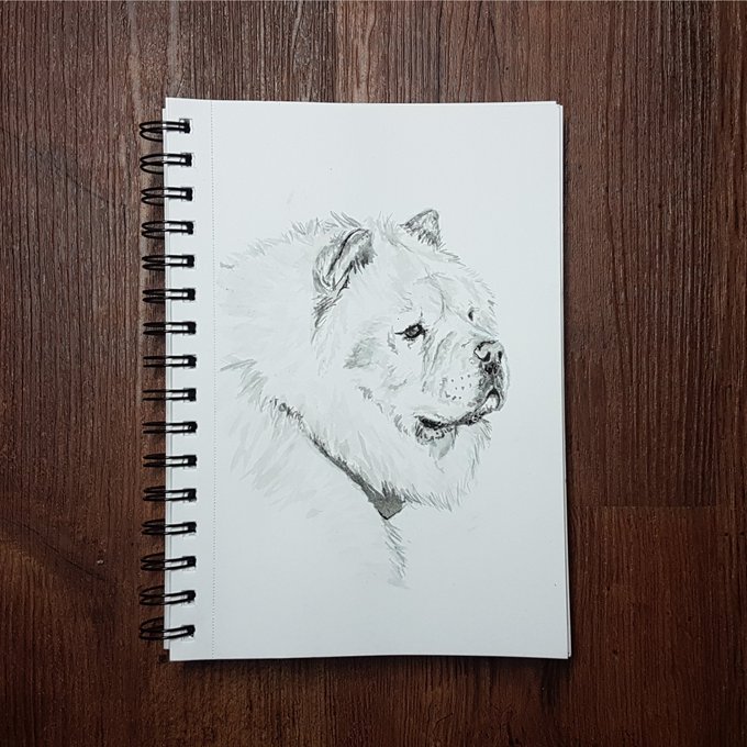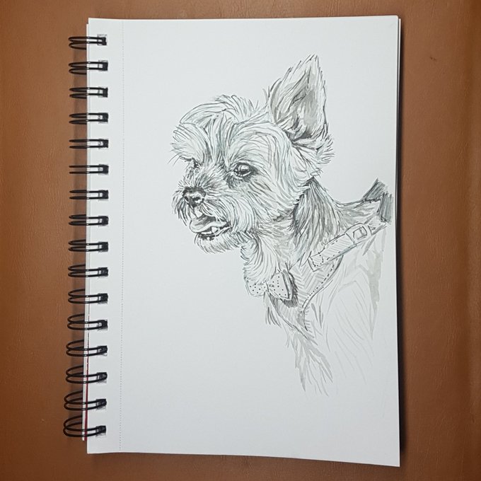 Inktober Day 25 Took a more minimal approach to this portrait and mainly used a flat brush for a fluffy effect #inktober #inktober2021 #ink #fluffy #fluffydog #dog #art #petportrait #painting #artchallenge
