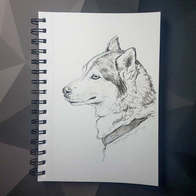 Inktober Day 29 Wolfy Dog #inktober #inktober2021 #ink #dog #wolf #wolfdog #art #petportrait #sketchbook #dailyart