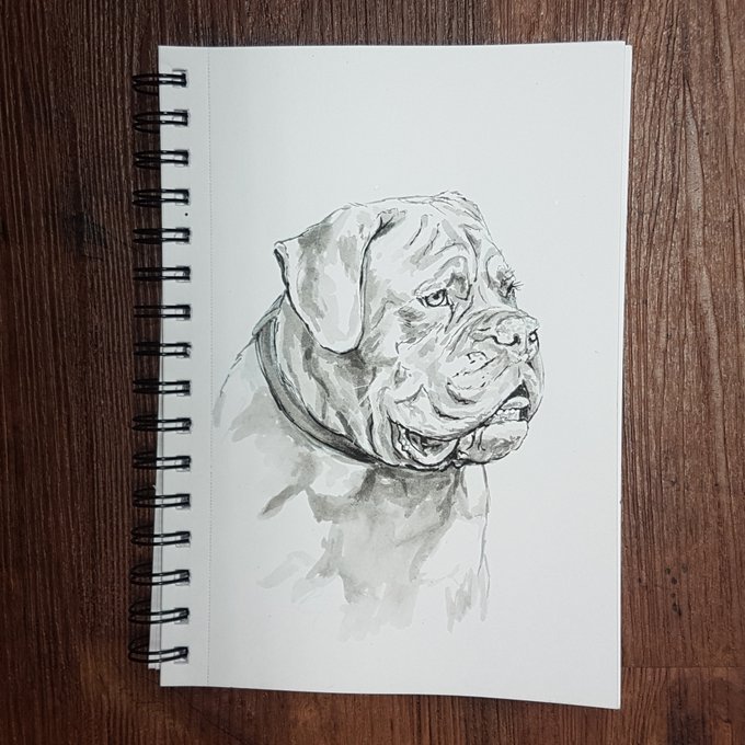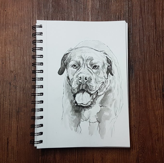 Inktober Day 22 I decided to use some brand new brushes for this portrait - a flat one for shading and a tiny one for details. This was a good combo for painting those wrinkles. #inktober #inktober2021 #ink #petportrait #Art #Artist #BigDog #mastiff #sketchbook #dailyart