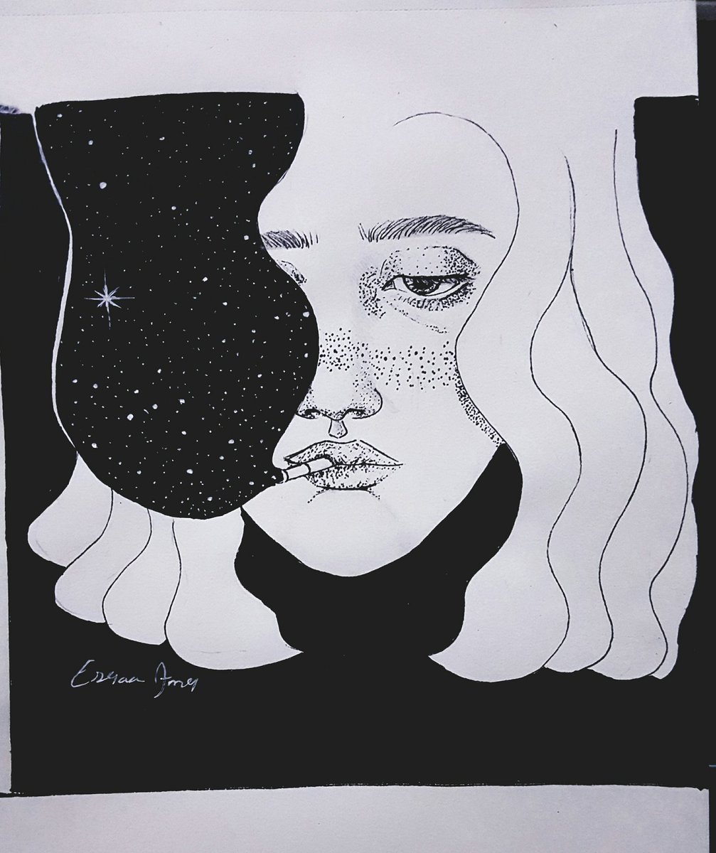 and in the end all i learned was how to be strong alone ♥ .... new ink sketch 🌸 insta: instagram.com/esraa_amr9 #art #sketch #inksketch #artvsartist #ArtistOnTwitter #portrait #staysafe #stayhome #quarantine