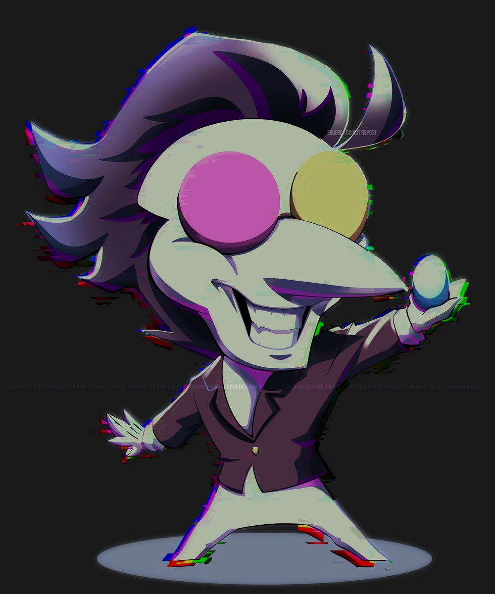 Spamton's little hair tufts go both directions at his neck. And he's got little pointy not-feet. #spamton #DELTARUNE #DeltaruneChapter2