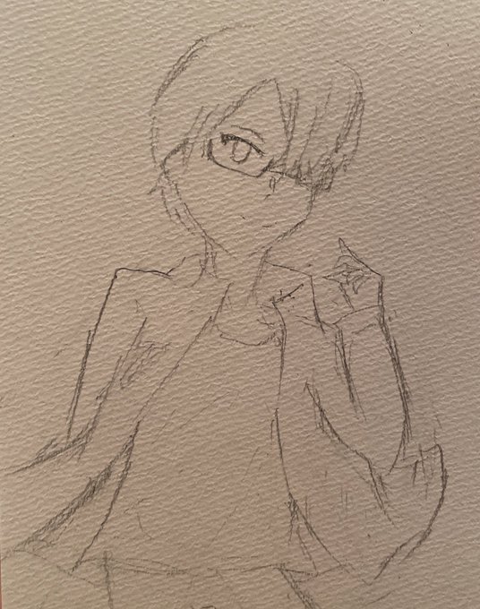 こういう構図で描いてみたかった 気が向いたらデジタルでも描くかも #ツド絵