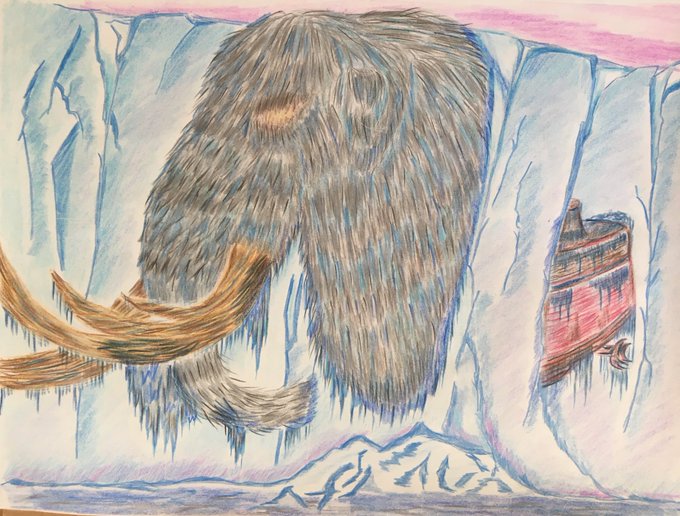 1 13 #南極の日 #色鉛筆 #色鉛筆画 おはようございます。 地球温暖化より氷が溶けて、色々な物が発見されてくるでしょう。 昔に描いた絵。 22/12/14 06:50