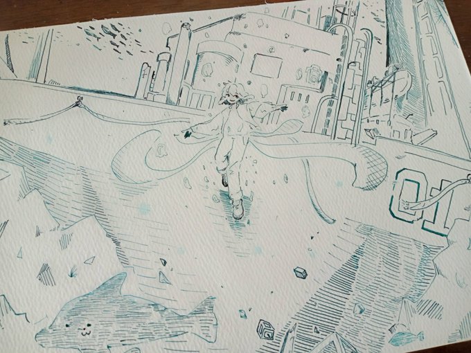 初ガラスペン取り敢えずは完成 家にスキャナーなどはないので2枚目あいぱよのスキャン機能。色違う。 #ペン画