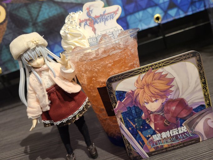 スクエニカフェにて。コースターはヒーロー君。え、これランダムじゃないの?ぴったりじゃん。 #アサルトリリィドール部 #アサルトリリィ飯テロ部 #聖剣伝説