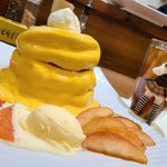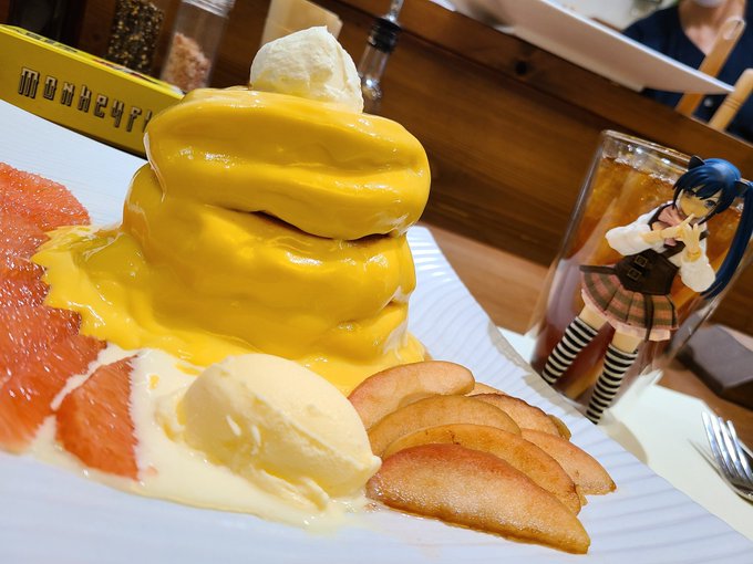 紅鶴さんのパンケーキ。 有名みたいで予約うんぬんだけど、少し待ったら食べれました。まじ、女性だらけ中でおっさんのお人形遊びはキビシイが勝った。 #アサルトリリィドール部 #アサルトリリィ飯テロ部