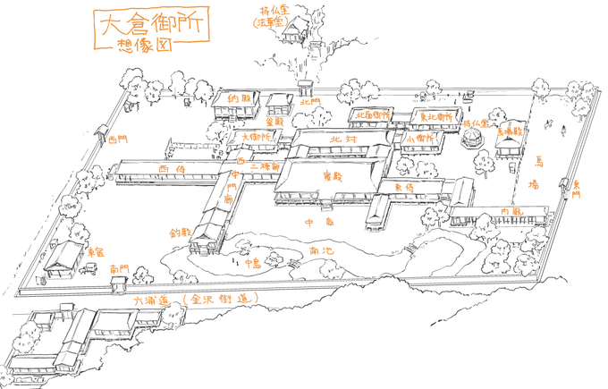 鎌倉殿の13人を見ていて、御所のヒキの絵を見たいなと思って描いた大倉御所想像図