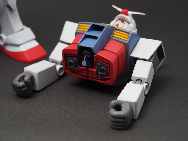 旧キット1/100ガンダム完成 キャラメルの箱みたいな体型になってもいいから腹部にコアファイターを収めてみたいと思って作りました