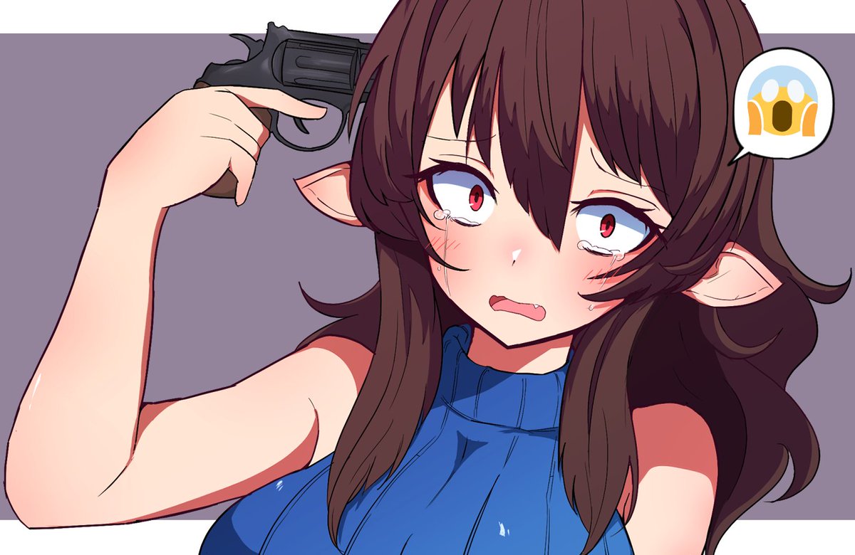 61 124 1いいねごとに口径が大きくなり1RTごとに6連発リボルバーの引き金を引くロシアンルーレットのイラストです 21/09/22 15:35