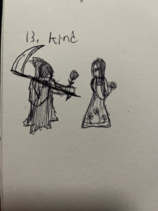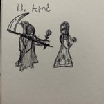 Day 13 of Inktober with the Kind prompt. Just a little sketch of death and life gifting eachother flowers :D #inktober2022 #inktoberday13 #inktober2022kind