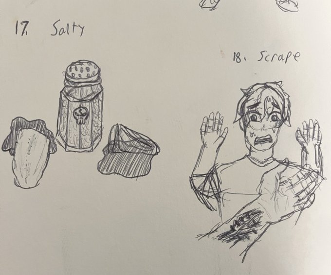 Day 17, 18 and 19 of Inktober with the prompts of salty scrape and ponytail. Tried to turn each one into a spooky version with ripped tongues, a zombie bite and a cut off ponytail. #inktober2022 #inktober2022salty #inktober2022scrape #inktober2022ponytail