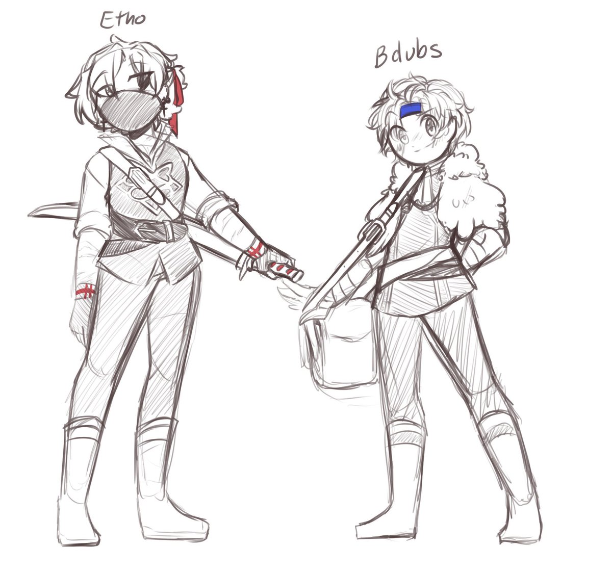 More #HCFe3hAU designs! Niki and Tina war arc, and Etho and BDubs academy arc :D Niki and Tina don’t go to the academy, but they do show up as soldiers or on different sides as support #hermittwt #ethoslabfanart #bdoubleo100fanart #nihachufanart #tinakittenfanart