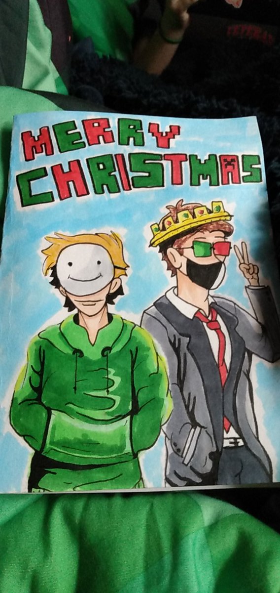BRO, MY UNCLES SON MADE ME A CHRISTMAS CARD AND WE NEVER REALLY TALK BUT HE KNEW WHO I LIKED OMG LOOK HOW FUCKING COOL THIS IS IM SCREAMING RN. #dreamfanart #ranboofanart #mcytfanart