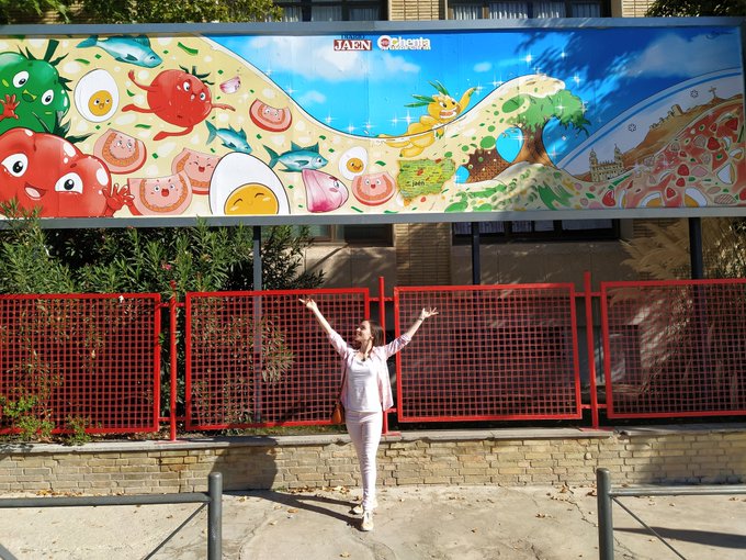 Con todos ustedes, mi última obra: ¡Una pipirrana! La tenéis en el polígono industrial de los Olivares, en Jaén, al lado del periódico. Espero que os guste ❤️ #artvsartist #EveMae #mural