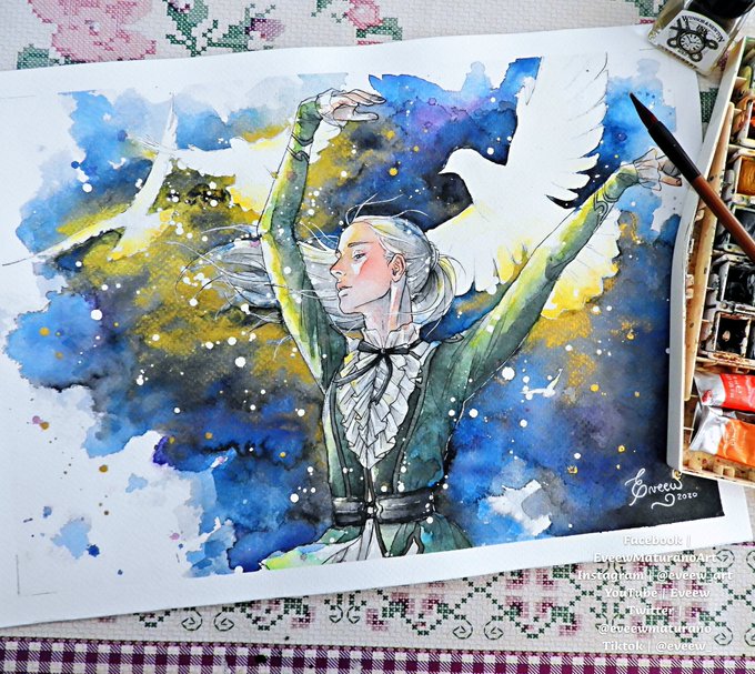 Here my participation of #artvsartist2022 together with my favorite watercolors of this year 🖤🧡 🌸 IG: @ eveew_art #artvsartist #19days #19天 #19daysfanart #moguanshan #hetian #tianshan #old先 #oldxian #fanart #bl #yaoi #boylove #watercolor #art #chibiart