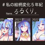 テンプレ使わせていただきました。 #私の絵柄変化5年紀 顔元だけですが。 今年はまだ奏を描いてないので代わりにみなもを。 ちなみに2020年からパス線画を使わなくなり、下書きを置かずにアタリを足しながら線画を描く方式になってます。 twitter.com/NONNKI_ir/stat…