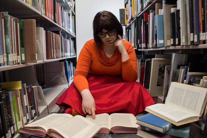 This is one of my favorite shots of Velma and I would live to take her back to a library to get more! 📸:Grace Beasley #velma #cosplay #velmacosplay #velmadinkley #scoobydoo #scooby #femalecosplayer