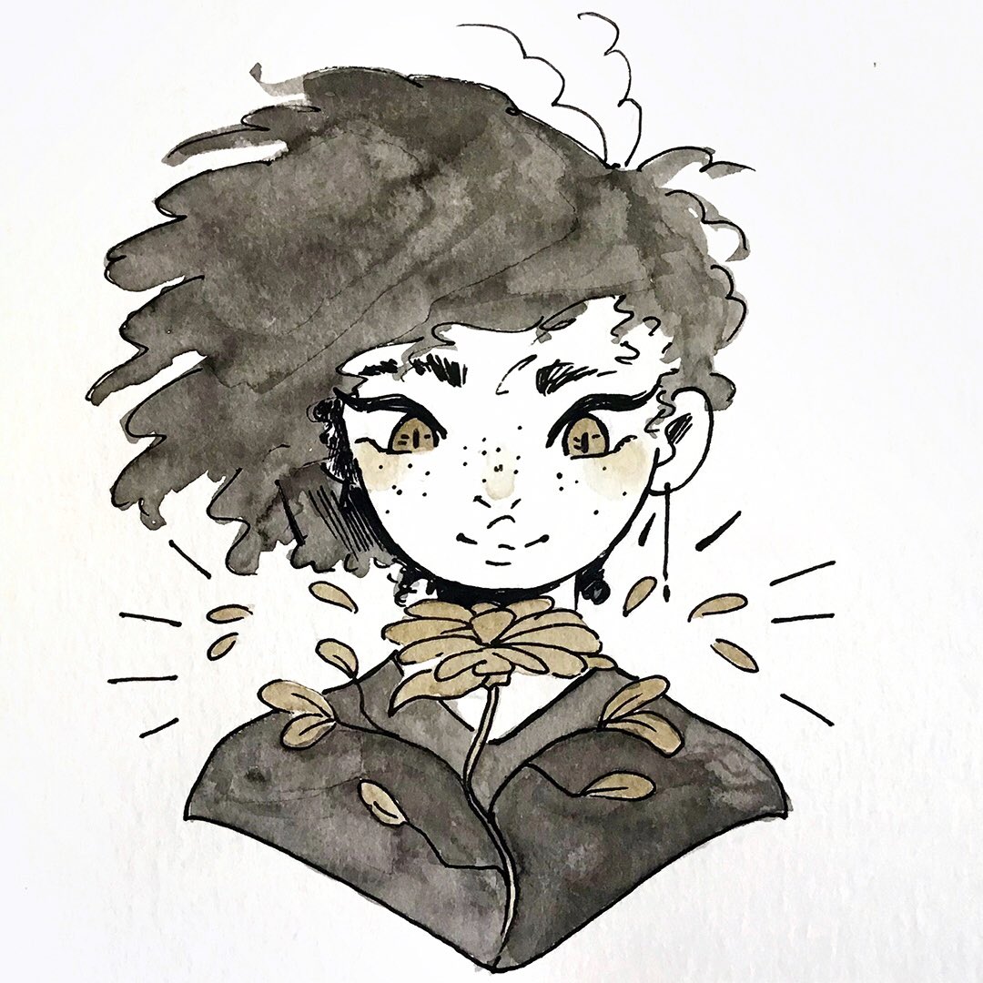 Day 3. Powers Aster, like the rest of her family, can make plants grow and revive🌱 #mywitchunioc #Inktober2019 #inktoberday3