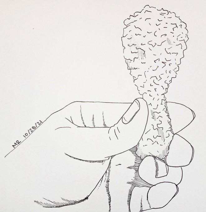 Inktober day 28 prompt 'crispy'. Found a stock image of a hand holding a chicken drum. I just changed the chicken into fried chicken. Here's the stock photo link: unsplash.com/photos/Cr8_jYu… #inktober #crispy pic.twitter.com/HhyyJHQ0HY