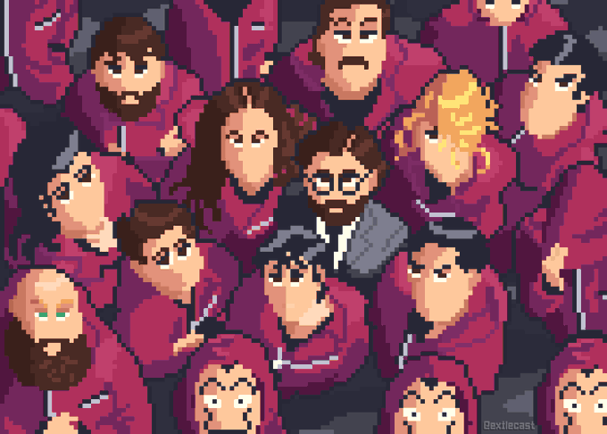 So yesterday I did a marathon of #LaCasaDePapael #MoneyHeistSeason5 until 5am... #pixelart | #aseprite | #ドット絵