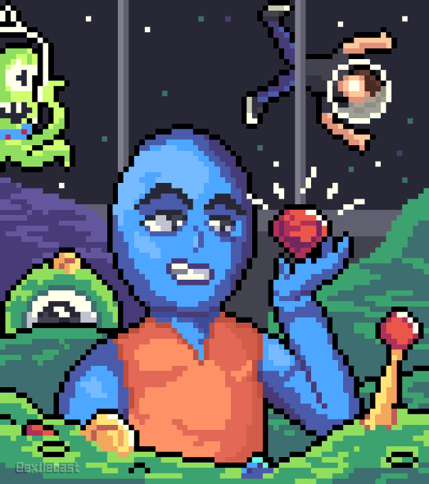 Hi #PortfolioDay ! 🛸 I'm Pedro, one of the creators of #SpaceScape and a freelance pixel artist that happens to like to play with squares. #pixelart