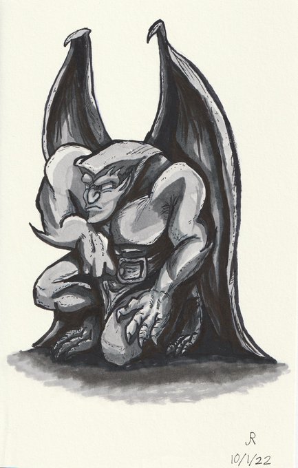 Inktober Day 1: Gargoyle "Goliath Sleeps" . 6"x9" . #inktober #inktober2022 #inktober22 #inktoberday1 #inktober2022day1 #inktobergargoyle #inktoberday1gargoyle #inktoberdrawing #pentel #copicart #copicsketch #gargoyles #disneygargoyles #goliath #gargoylesgoliath #gargoyles