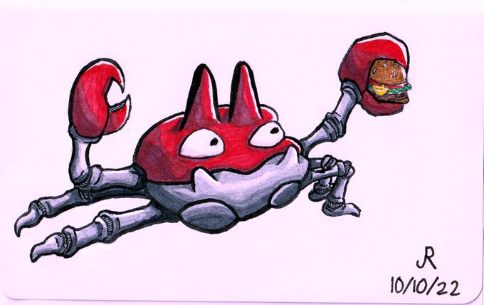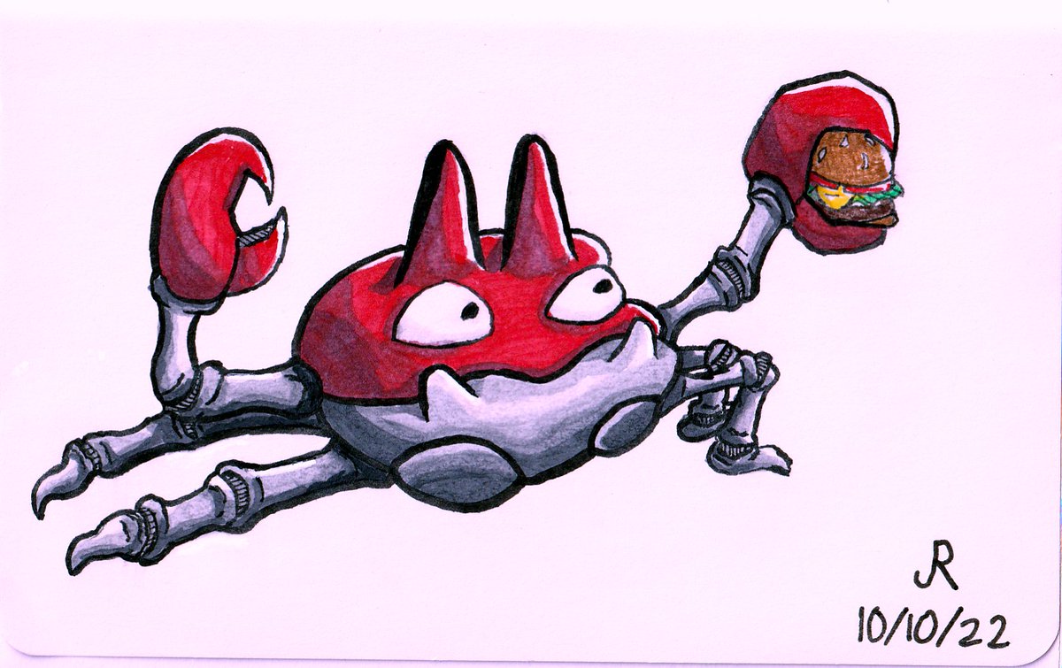 Inktober Day 10: Crabby "Krabby Grabs a Krabby" . 5.5"x3.5" . #inktober #inktober2022 #inktober22 #inktoberday10 #inktober2022day10 #inktobercrabby #inktoberday10crabby #inkdrawingoctober #krabby #krabbypatty #pokemonkrabby #krabbypokemon #pokemonfanart #krabbypatties