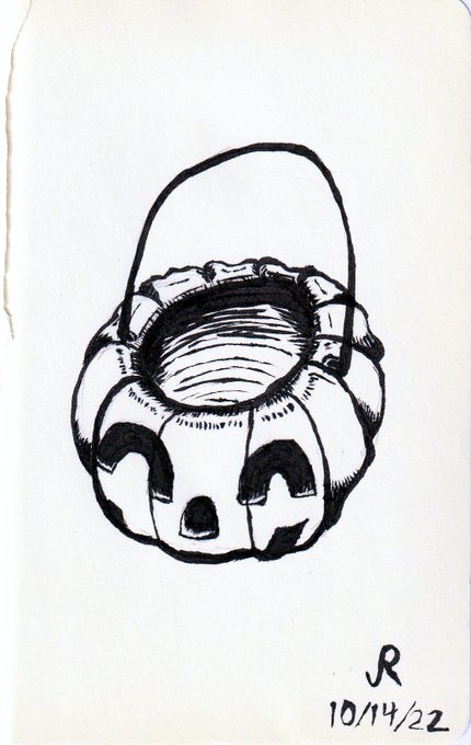 Inktober Day 14: Empty Had no idea what to do for this. 3.5"x5.5" #inktober #inktober2022 #inktober22 #inktoberday14 #inktober2022day14 #inktoberempty #inktoberday14empty #Inktober_PerfectChallenge #moleskininktober #halloweenpail #jackolanternpail #trickortreat #trickortreatpail