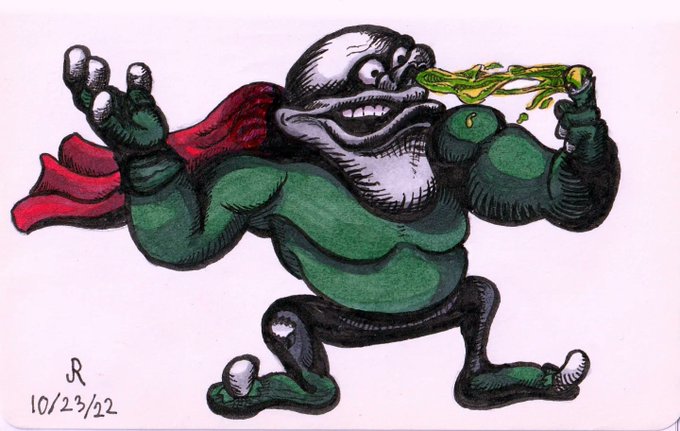 Inktober Day 23: Booger "Boogerman" . 5.5"x3.5" . #inktober #inktober2022 #inktober22 #inktoberday23 #inktober2022day23 #inktoberbooger #inktoberday23booger #Inktober_PerfectChallenge #inkdrawingoctober #moleskininktober #boogerman #boogermanstrikesagain #clayfighter63