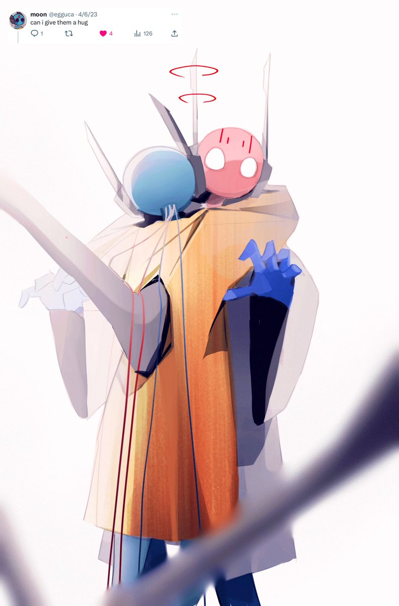 Ask answered—Moon (canon) giving FP (au) a hug! (This is an AU, feel free to ask anything at my previous post!) #rainwroldau #rainworld #rainworldfanart
