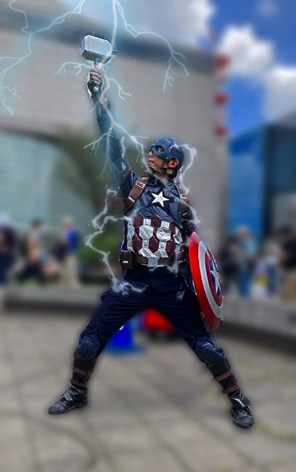 ソー「持てると思った…!」 “アベンジャーズ/エンドゲーム”より キャプテンアメリカ/スティーブ・ロジャース 撮影 @BillieNiceguy 様 #コスサミ2022 #キャプテンアメリカ