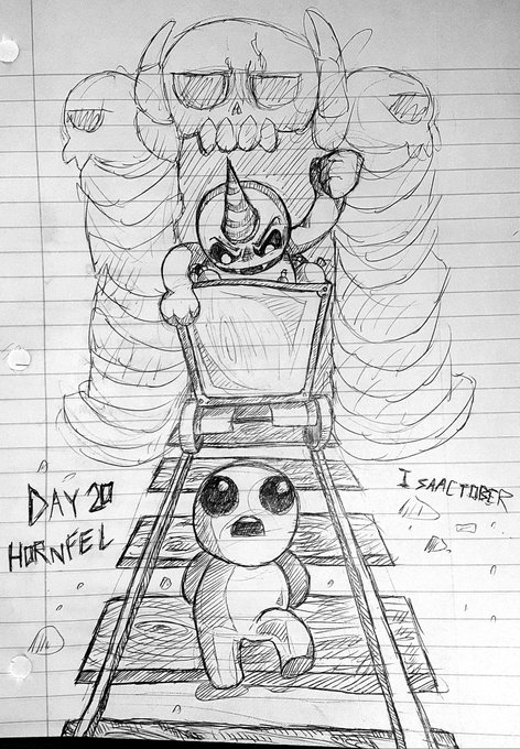Day 20. Battling The Lord Of The Mines #isaactober #inktober #bindingofisaac @edmundmcmillen @tyronerodriguez @Apollyon_Pal