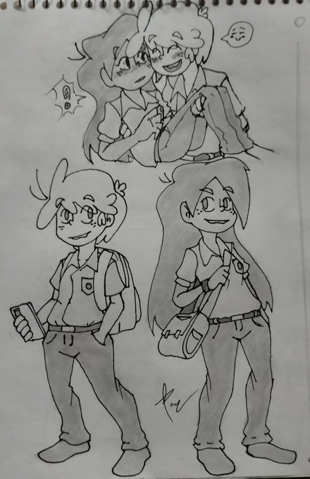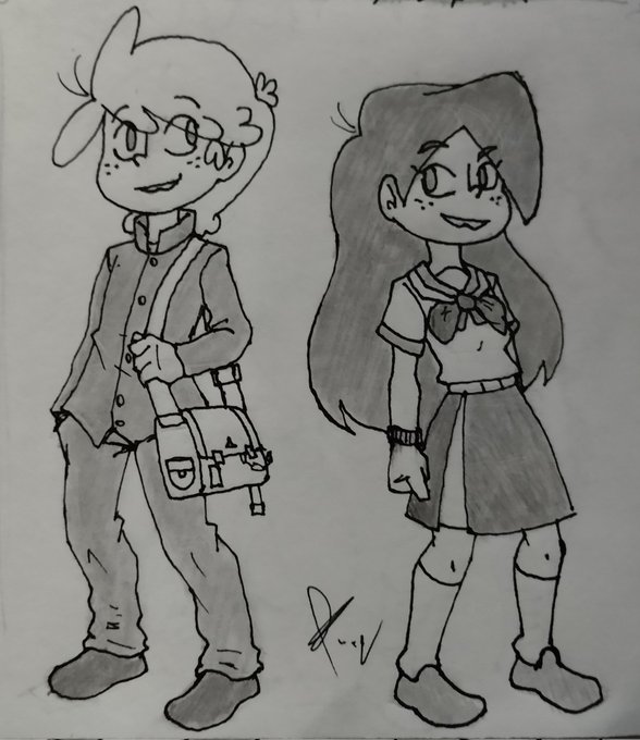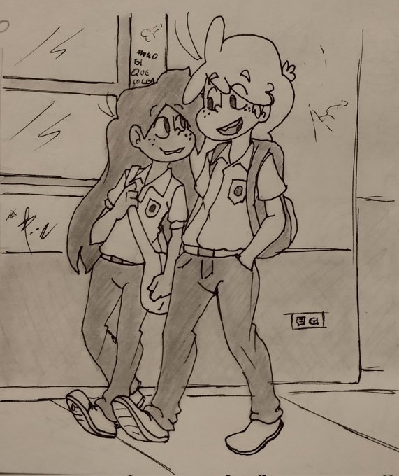 Lincoln y Ronnie, pero con el uniforme de Liceista venezolano xd (cuando lo digitalicé se verá mejor xd) (Inserte "El Boleta Enamorado"xd) #lincolnloud #RonnieAnneSantiago #cute #fanart #traditionalart