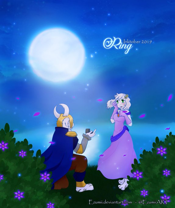 #Inktober2019 #ring Una versión joven de Asgore y Toriel de #undertale para abrir el primer día del #inktober. Temática: "Anillo" ¡Espero que les guste! HD: deviantart.com/ezumii/art/Und…