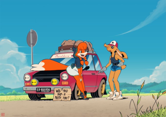 Oh right! It's #PortfolioDay✨ I'm Fox Popvli and I draw animal people, cars, pinups and nostalgic stuff!