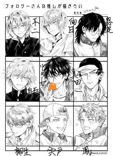 #フォロワーさんの推しが描きたい 1枚目が出来上がったのでとりあえず…! キャラの名前をめちゃくちゃ美しく書いてくださったのは世界一頼もしいわたしの自慢の友達の@tenrannosora ちゃんです!!!!!ほんとありがとう!!!!