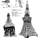 背景供養。 右の東京タワーはパース定規で描いてます!実物と比べると分かり易いと思いますけど本物のタワーってもっと太ってるんですよねw #イラスト #オリジナル #絵描きさんと繋がりたい #漫画好きな人と繋がりたい