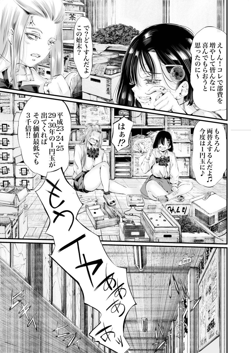 「古銭ガール」フデ5円・前編です! 後編は27日金曜の20時頃にアップ予定です! #漫画 #漫画が読めるハッシュタグ #一次創作 #絵描き繋がれ #ド直球に言いますがフォローしてください #春の創作クラスタフォロー祭り