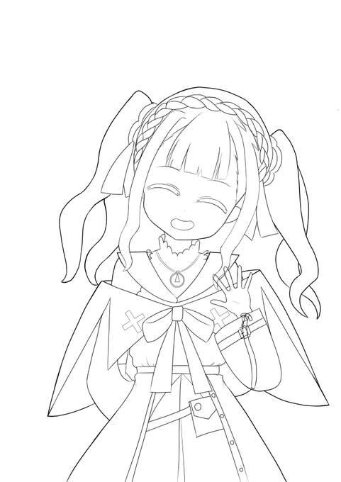 動画見ながらのんびり線画描いてた! 体描きなれてなくて全然進まぬ! とりあえず進捗として顔だけ #アトリ絵