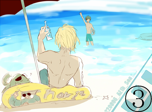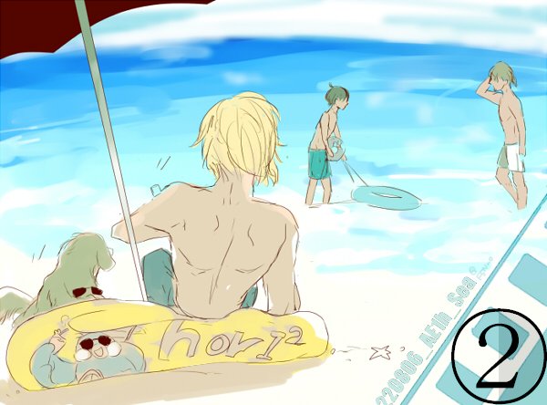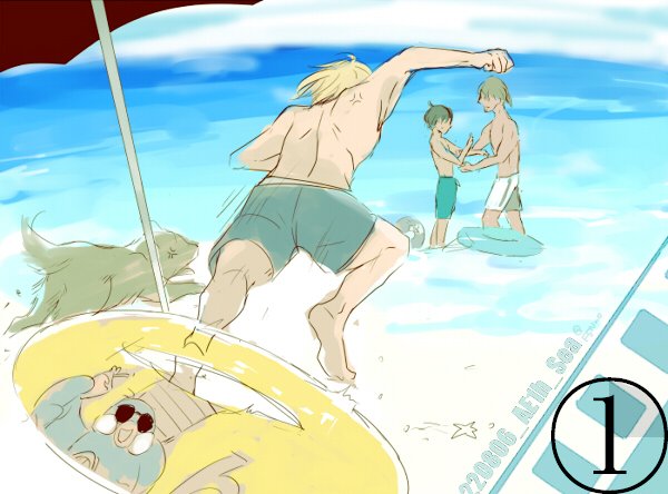 78 393 【海】 if/(※遠目にモブ英) 犬と同じ速度で砂浜を走る男 #A英ワンドロワンライ 22/08/06 22:16