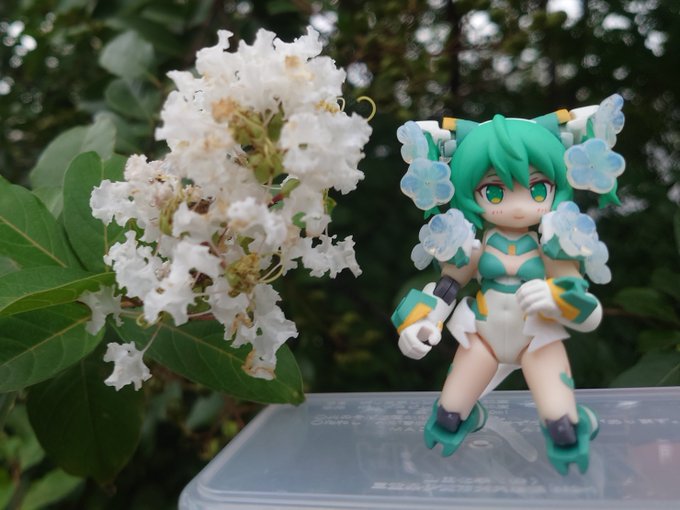 #今月作ったプラモ晒そうぜ #みんなのシルフィーが見たい 月刊シルフィーⅡ特別号 BLADE先生の誕生花のサルスベリをモチーフにカスタマイズ 本来のデザインを尊重するべく塗装しない方針のため、正確にはデコレーション? なお、先月の誕生日を見てから思い付いたため盛大に遅れている件はご容赦を…