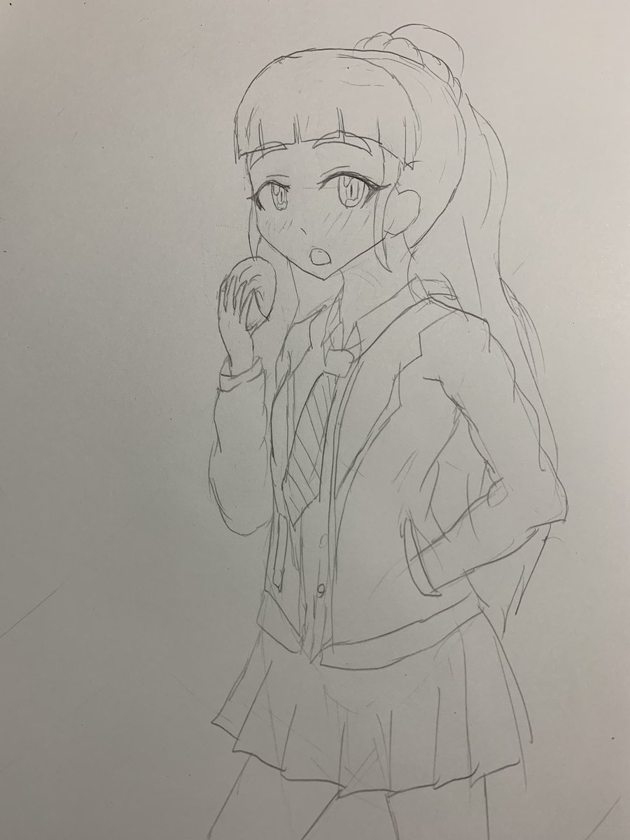 #モバマス版深夜の真剣お絵かき60分1本勝負 学校帰りにコンビニに寄って買った肉まんを食べようとした時にPとバッタリ会って何故か恥ずかしがる神谷奈緒を描きました。 #神谷奈緒 今週の #にじらじっ!の冒頭でまつえりさんが話してた内容から