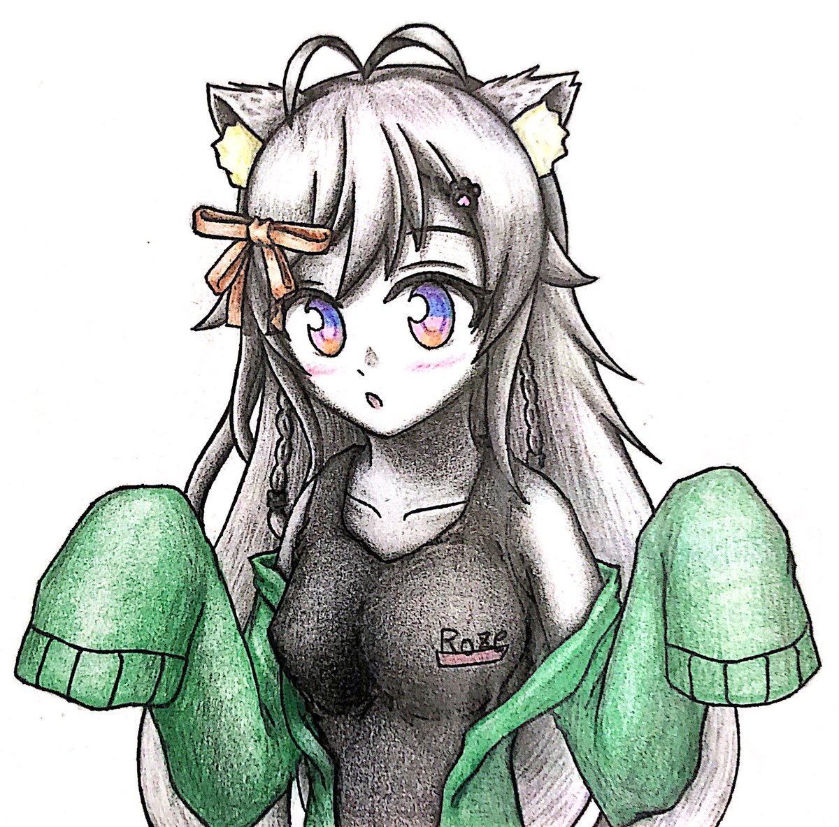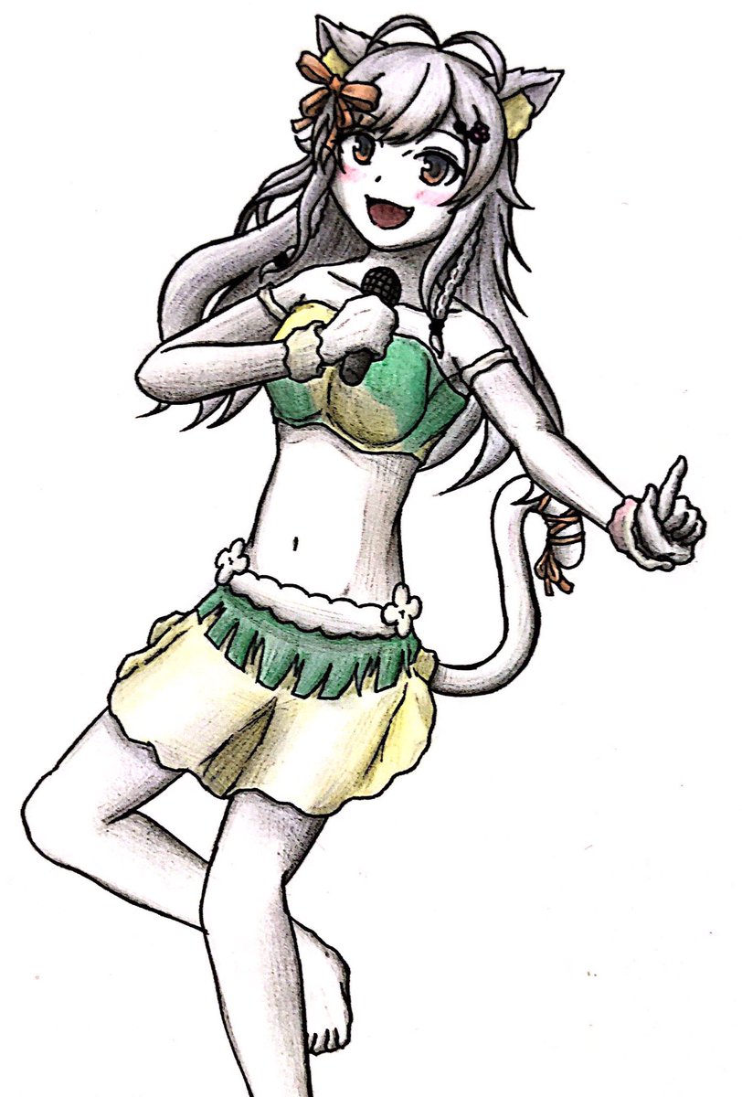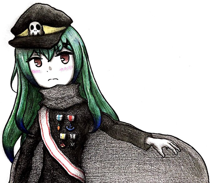 ちくわちゃんにうちのポンコツの衣装を着せてみたのでした 意外と可愛くてびっくりした 今回ちょっと時間かけすぎたせいで鉛筆の色が落ちてるのが悔しみを感じるところ #ちくわーと