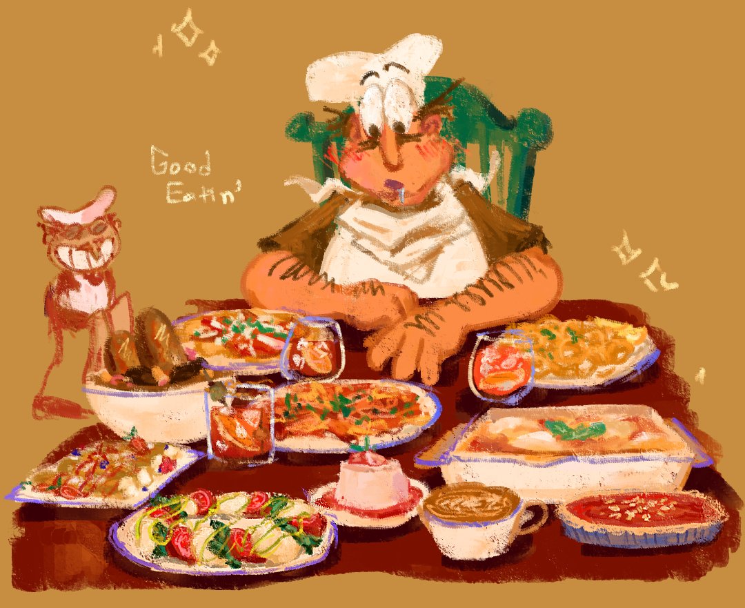 [#pizzatower] i drew this while i was starving i am now well fed i hope peppino gets to eat good too i know this man hasnt eaten a proper salad in several years