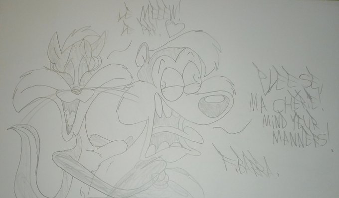 Pepé le Pew and Penelope Pussycat, drawn by moi! Happy 77th to Pepé, honhon! 💖 #WeLovePepeLePew #looneytunes #fanart @LeCatProduction @AntBorb @FugsFunny98