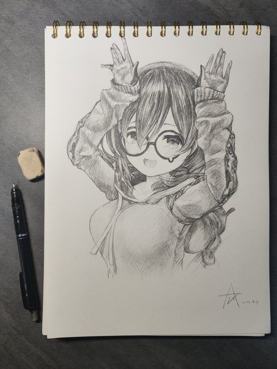 27 144 #絵フブキ #ホロライブプロ5周年 Fubuki with glasses in a Cafe looking at you🦊 22/09/06 20:13