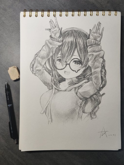 #絵フブキ #ホロライブプロ5周年 Fubuki with glasses in a Cafe looking at you🦊