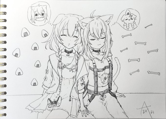 An art of Okakoro #絵かゆ #できたてころね @nekomataokayu @inugamikorone