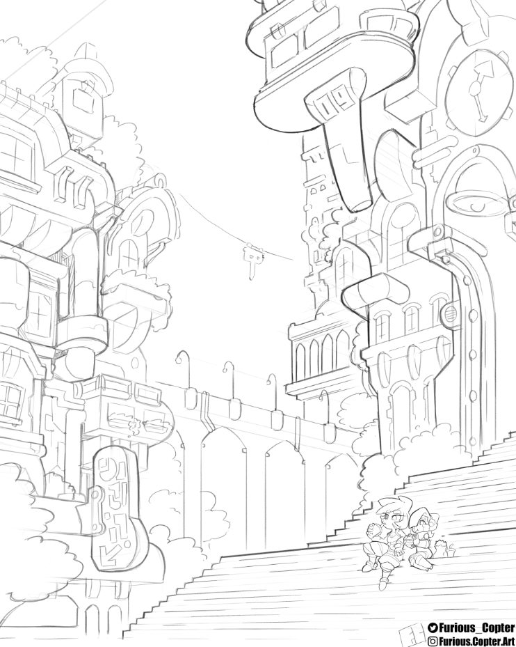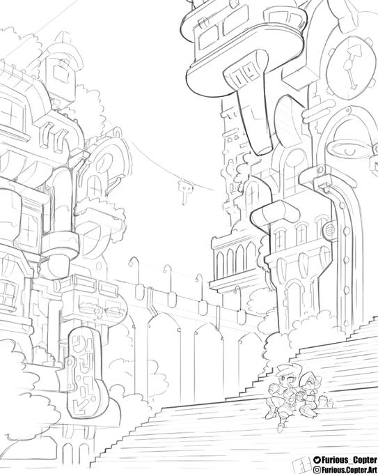 Wip. Coloring this is gonna be a learning experience as I've only did this only like once before 🤔 #artistsontwitter #arttwt #originalcharacter #cityscape #digitalillustration #WIP